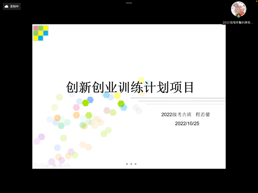 程若馨同学从项目选题缘由、立项阶段、结项方式与收获四个方面分享了她参加大学生创新创业训练项目时的经验与感想,全方位地向同学们介绍了参与比赛的相关流程与注意事项。