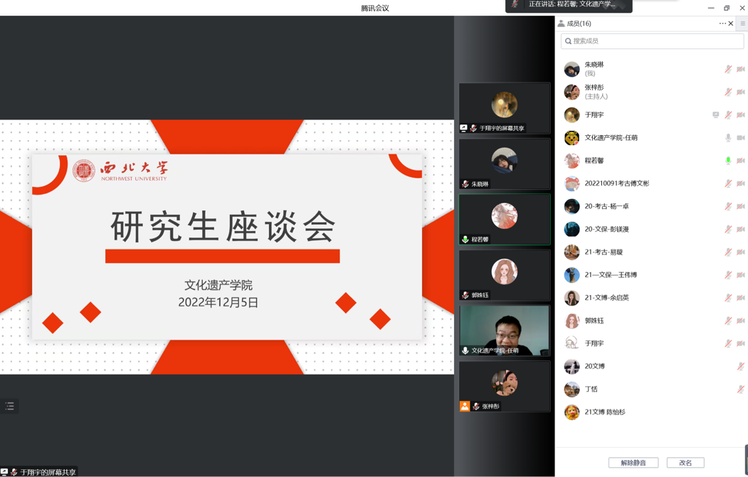 12月5日下午,欧亿6蓝狮在线研究生师生座谈会在线上召开。会议旨在关心同学们的生活情况,深入了解学生心声,解决疫情当下大家急难愁盼的问题,力求在这样一个特殊的时间段,为大家想办法、尽所能地营造更加良好的学习生活环境。欧亿6蓝狮在线副院长任萌、党委组织员张梓彤、辅导员丁恬以及研究生各年级学生代表参加了此次座谈会。会议由张梓彤主持。