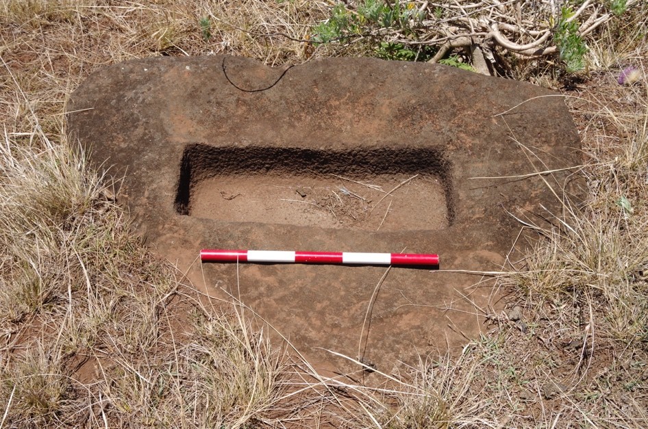 通过比较,发现大型雕像上“帽子”部分的石料就来源于普奈帕乌(Puna Pau)火山。考古资料显示,公元1300-1600年为此处地点的主要采石时期,在一些道路周边也发现了pukao(即雕像“帽子”)。此外,在采石场也发现了一些特殊沉积物与雕刻痕迹,如“眼睛”的刻凿、石器上的刻划痕迹。因而推测,采石场自身即具有圣地性质。