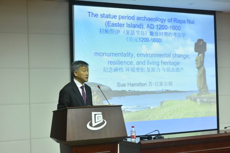 4月13日上午英国伦敦大学学院考古学院院长苏·汉密尔顿(Sue Hamilton)教授为我院师生作了有关“拉帕努伊(复活节岛)雕像时期的考古学(公元1200-1600):纪念碑性、环境变化、复原力与活态遗产”的报告,介绍了复活节岛古代历史,巨石像的制作、来源,展示了岛上先民活动的新证据,同时也再现了复活节岛古今景观变化的过程及未来发展对策。欧亿6蓝狮在线院长段清波教授主持该讲座,我院师生现场聆听讲座,并与苏·汉密尔顿(Sue Hamilton)教授进行了热烈交流讨论。